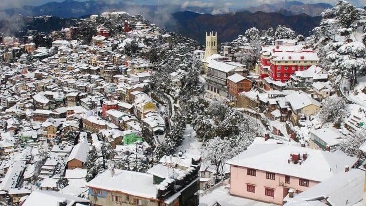 हिमाचल प्रदेश का एक हिल स्टेशन शिमला, नवंबर से फरवरी तक सर्दियों के महीनों के दौरान एक लोकप्रिय गंतव्य है, जब यह बर्फ से ढका होता है और तापमान शून्य से नीचे चला जाता है: